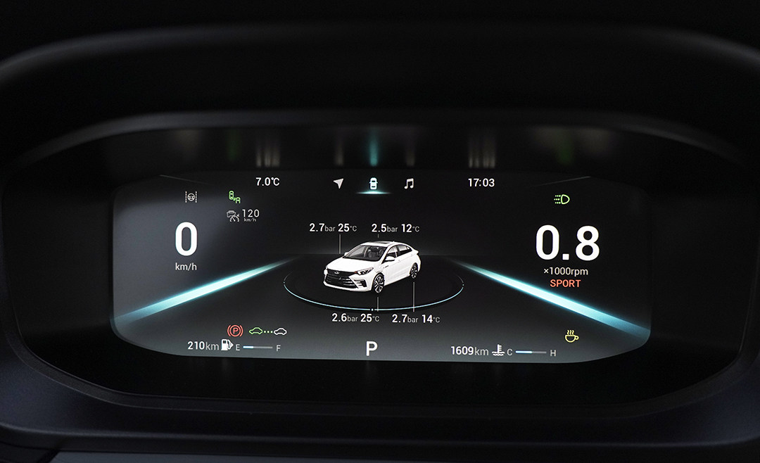 全液晶的仪表盘也是十分具有科技感,画面简洁且显示清晰,功能显示区域一目了然。