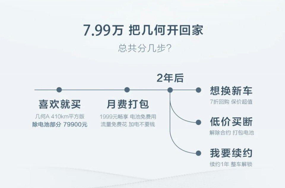 蔚来并不是首个吃螃蟹的车企,云度汽车曾针对π1和π3车型推出过三年五折回购的政策;欧拉R1推出“保值换购”;威马汽车推出“半价提车,6折回购”服务;几何汽车推出“两年7折超值回购”活动等等。