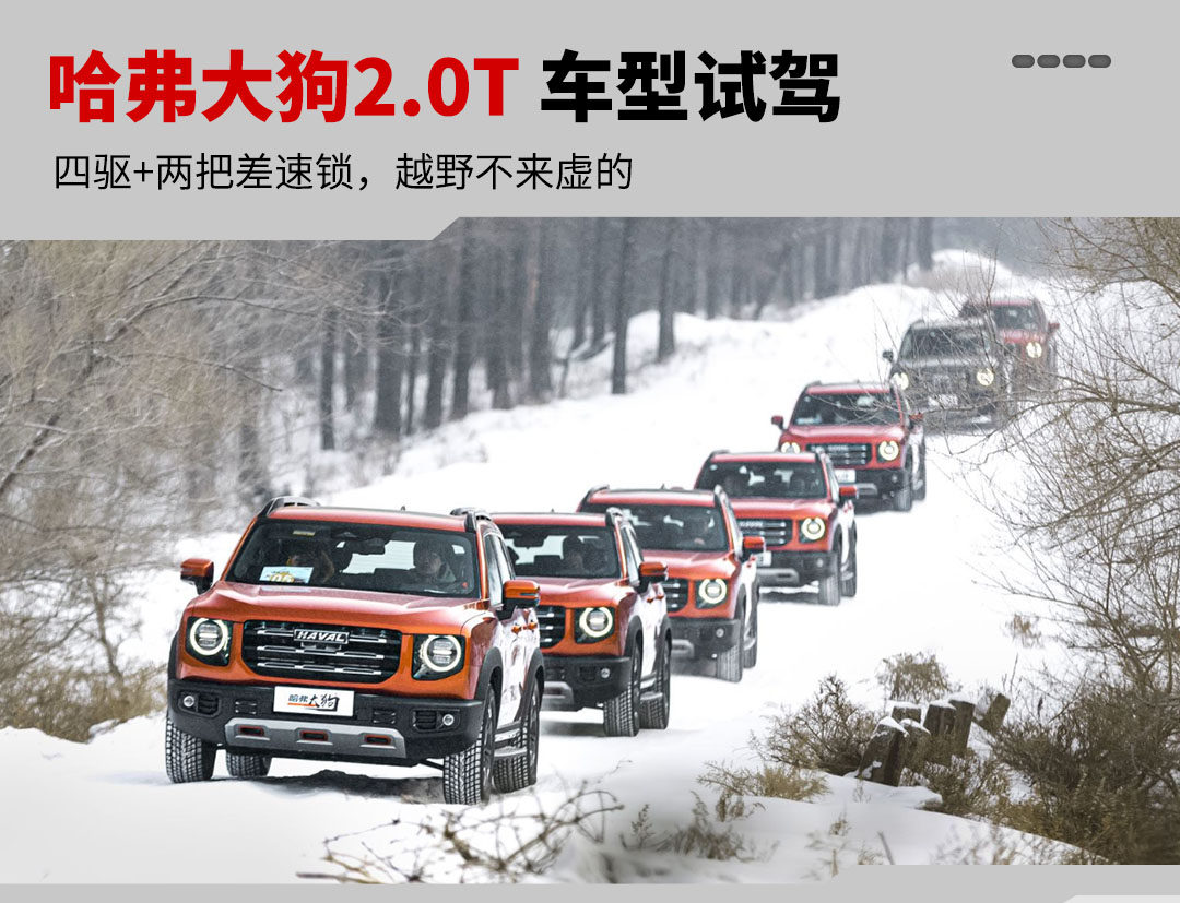 不过很快,哈弗大狗2.0T四驱车型就来到了身边,全新一代2.0GDIT发动机+四驱系统+中央差速锁+后桥差速锁,要知道这可是30万以内,唯一一个配备了两把差速锁的承载式SUV。那它的表现如何?买买君这次冒着零下30度的极寒天气,在冰天雪地率先体验了一把哈弗大狗2.0T四驱车型。