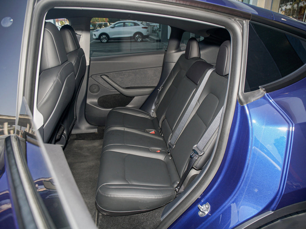Model Y的空间表现比Model 3有进步,头部和腿部空间都有所增加,就算是180cm的小伙坐进去,前后头部、后排腿部的距离都有1拳有余。且Model Y的后排地台是全平的状态,第三人也能获得比较好的坐姿。