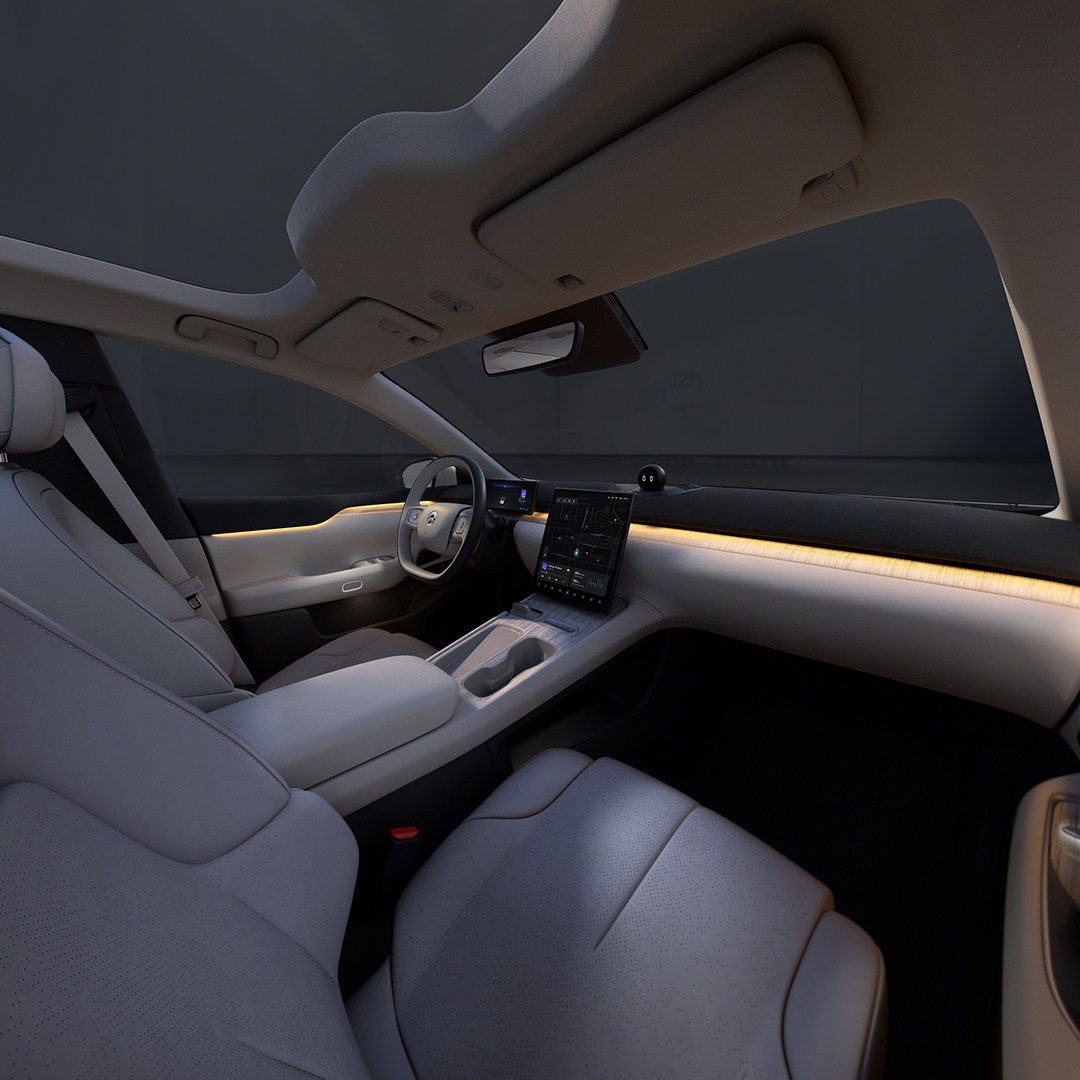 ET7采用第三代高通骁龙汽车数字座舱平台和5G通信模块,NOMI升级到了2.0,可以分音区识别乘客的语音指令,做到更智能化。