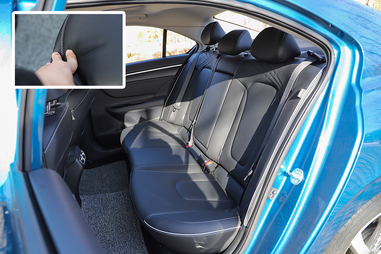 第二排空间也很不错,中间凸起较小,而且配备了中间头枕,舒舒服服坐下三个人不成问题。最值得一提的是,全新名图的座椅填充物十分柔软且厚实,舒适度很好。