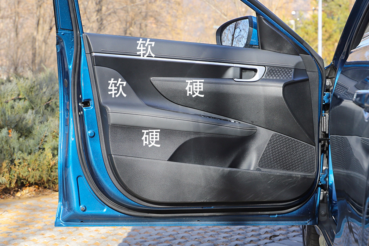 材质上不要有太高期望,作为较为亲民的B级车,有限的成本名图选择尽量去满足科技和舒适性配置,材质上则是够用就好。门内饰板上方和扶手部分为软质材质,其余则是硬材质,软包部分是真缝线,其余则是缝线造型。