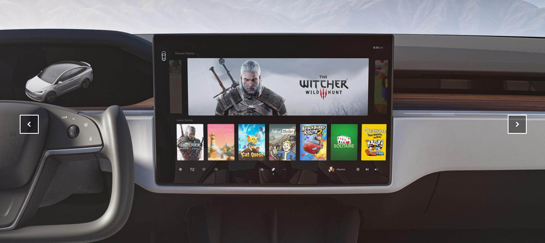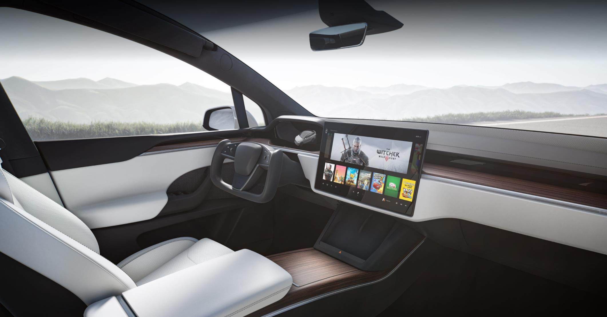 由这张图来看,是不是觉得Model S(X)的内饰好像一个游戏舱?17英寸的中控屏幕和8英寸的后置屏幕都可以用来玩游戏,其中中控屏的分辨率达到了2200x1300,并提升了亮度和色彩保真度,玩起来一定很刺激。