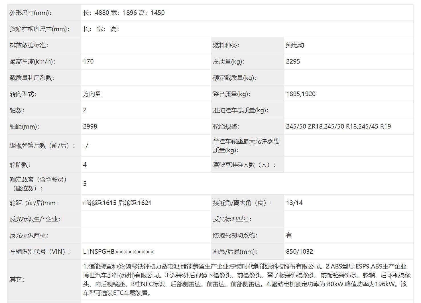 从申报图来看,新车长宽高分别为4880/1896/1450 mm,轴距为2998mm。同时,小鹏P7磷酸铁锂版的车身外观方面与在售车型保持一致。