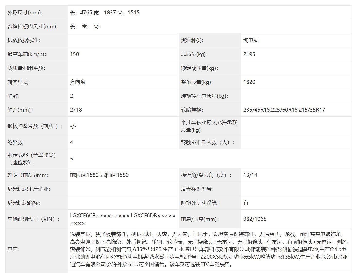 秦PLUS纯电版将搭载一台型号为TZ200XSK的驱动电机,其最大功率为184马力。同时,根据申报信息来看,该车将配备的是磷酸铁锂电池组,预计为比亚迪刀片电池。