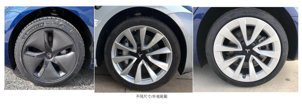 新款特斯拉Model 3继续提供两种尺寸/三种造型的轮圈,对应的轮胎尺寸为235/45 R18和235/40 R19。