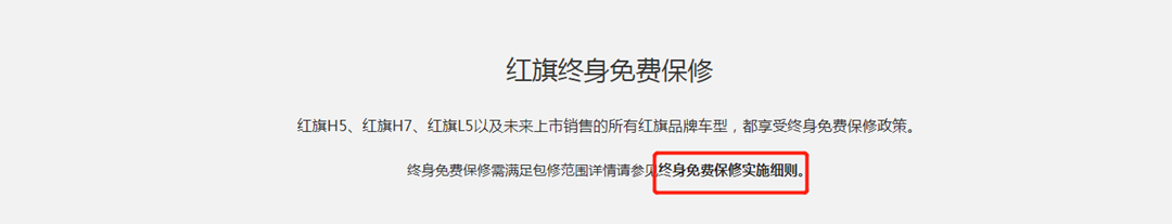 其在售的红旗品牌传统汽油车型,包括红旗H5、HS5、HS7、H9等,以及未来上市销售的所有红旗品牌车型,均可享受终身免费保修政策。