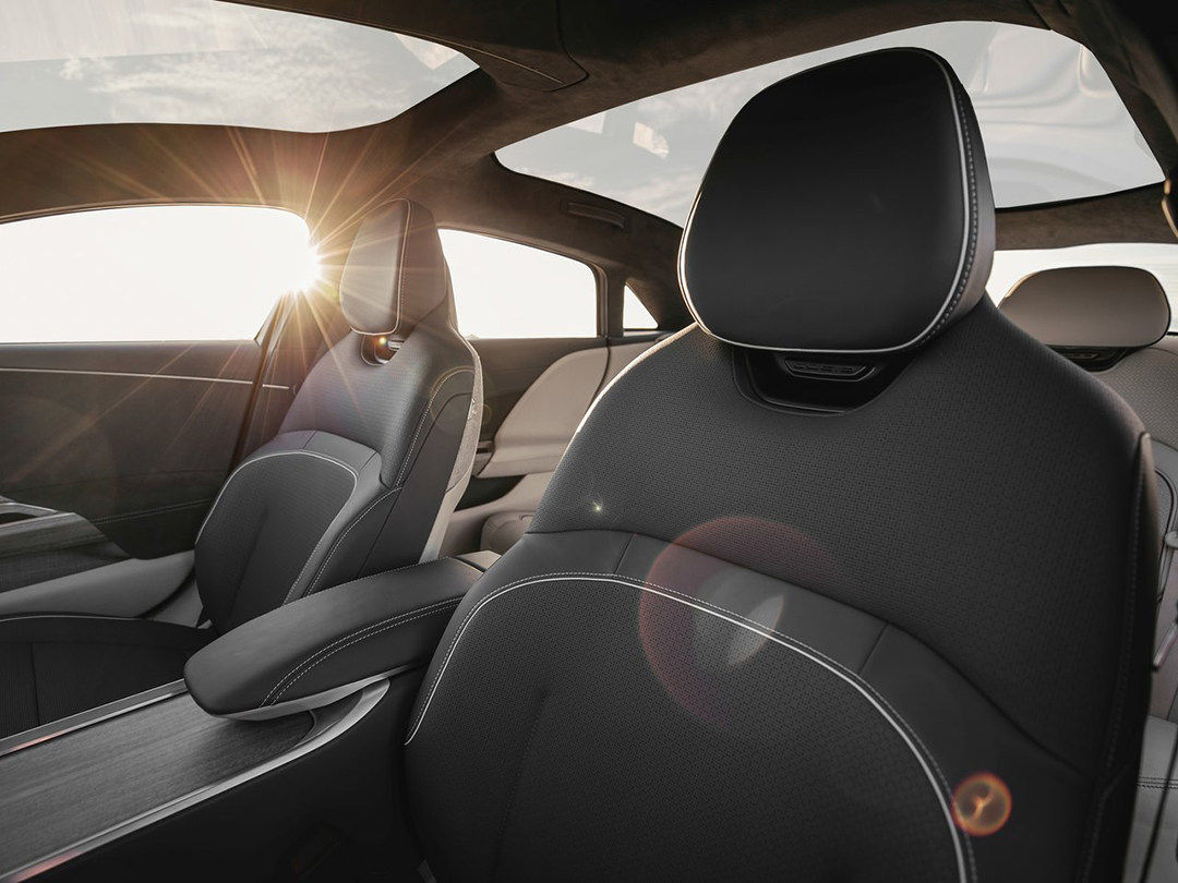 Lucid Air的驾驶舱设计也向未来致敬,首先映入眼帘的是34英寸的弧形5K屏幕,空调下方还配有一块液晶屏,整个驾驶舱采用环抱式设计,并通过不同材质和颜色的搭配,来营造车厢的高级感和极简风格。