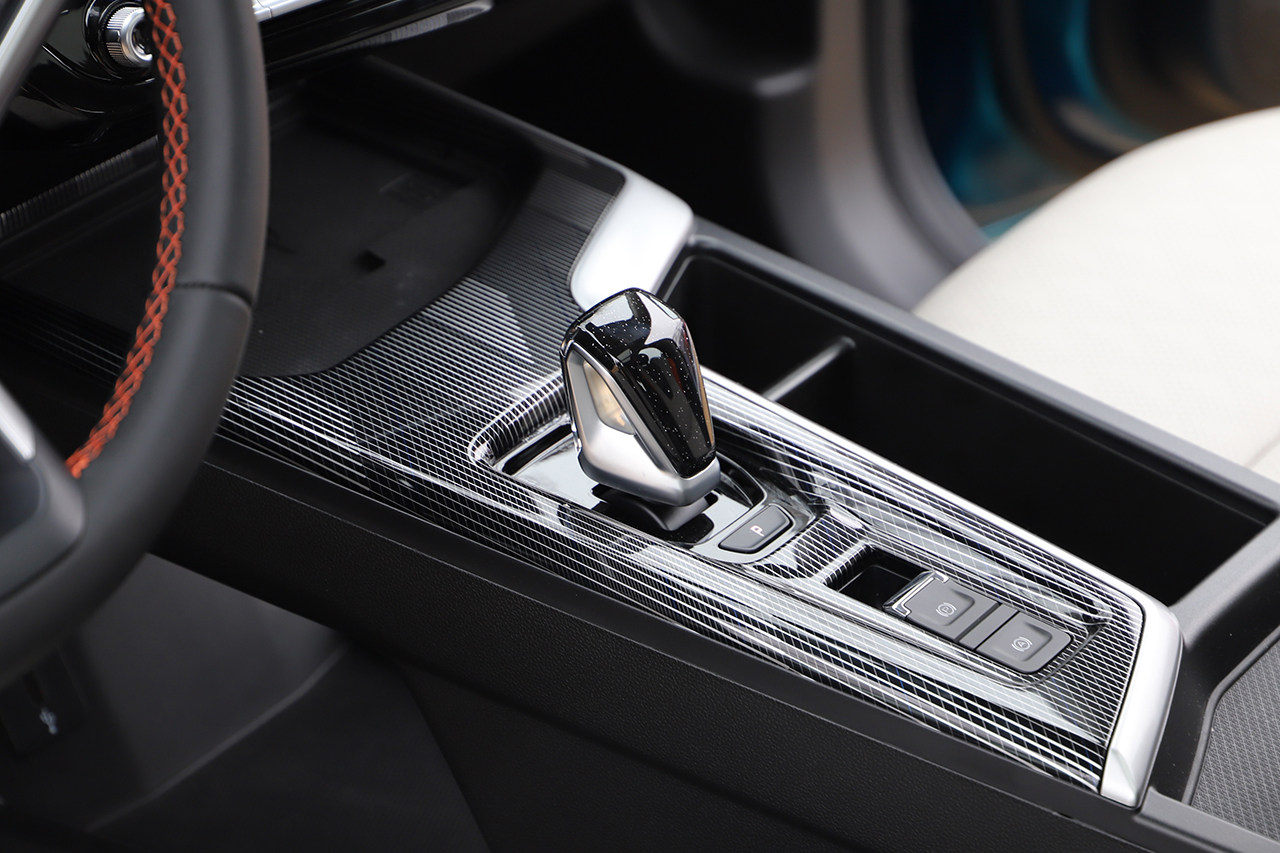 换挡机构为电子挡把,节省空间,造型也挺精致。