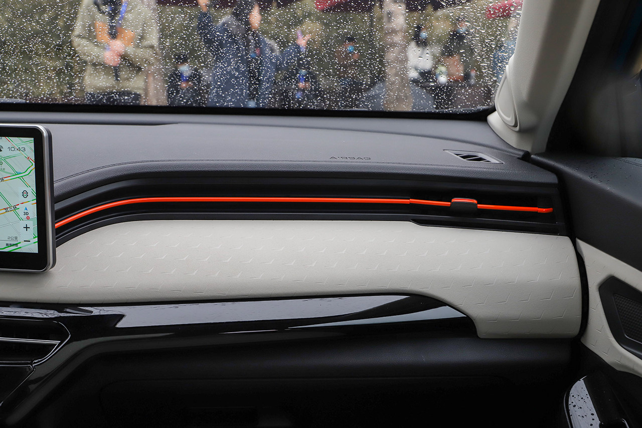 中控台上方有彩色饰条贯穿整个内饰,并且和空调出风口整合到了一起,中控台面板还加入了类似千鸟格的设计元素,视觉效果很好,即便是对于我这种不懂设计的,一眼也能感受到这是有设计的,走心了。