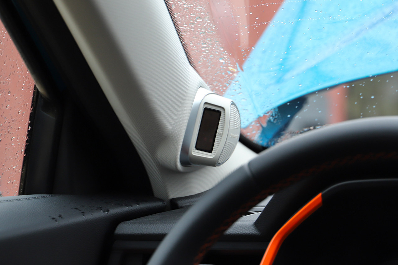 主驾驶A柱上加入了面部识别模块,主要为赤兔的身份识别系统服务,当驾驶员进入车内,面部信息比对过后,便可以同步账户登录以及个性化设置,为了保证成功率,如果识别失败(比如你化妆了……),系统还会通过声纹去识别。另外,这个模块还会提供驾驶员疲劳检测以及情绪感知(通过你的面部信息判断你的心情)。