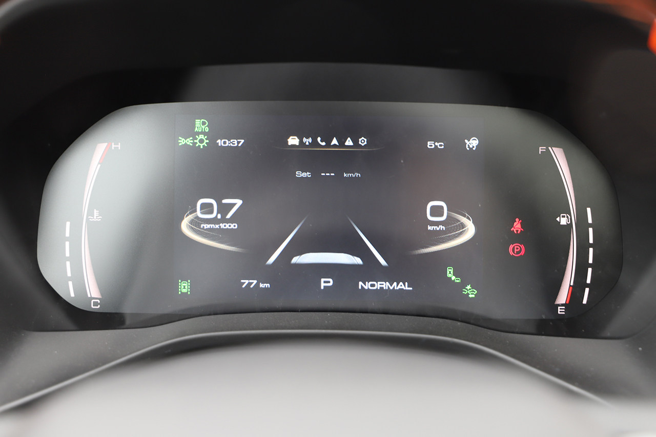 仪表盘为全液晶,但不是整体的那种全液晶,而是由中间矩形的液晶屏幕和两侧的小液晶屏组合而来的,显示效果和信息肯定没得说,就是没那么高级。