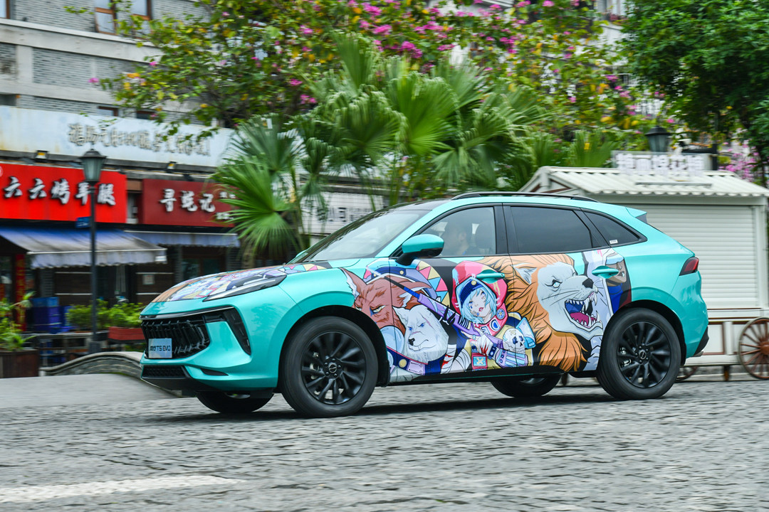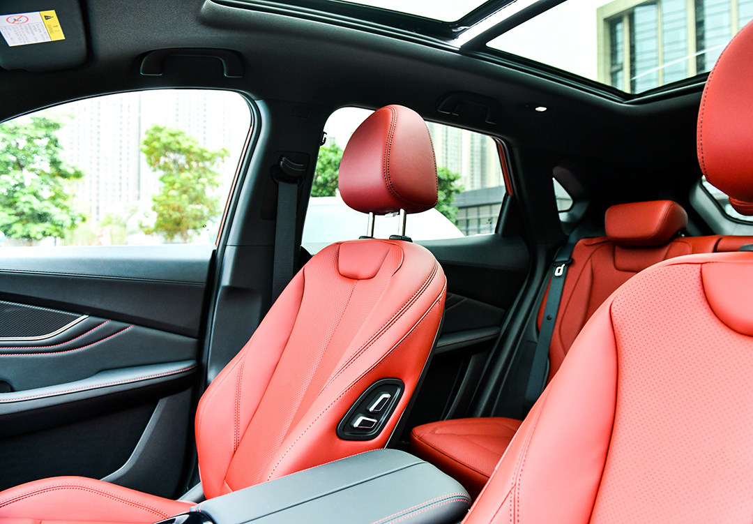 车身侧面使用了双腰线的设计,车顶略微下沉,营造一种类似轿跑SUV的风范,车辆还使用了19英寸的熏黑轮毂,轮胎尺寸为235/55 R19。车身尺寸方面,车辆长宽高分别为4565/1860/1690mm,轴距为2715mm。