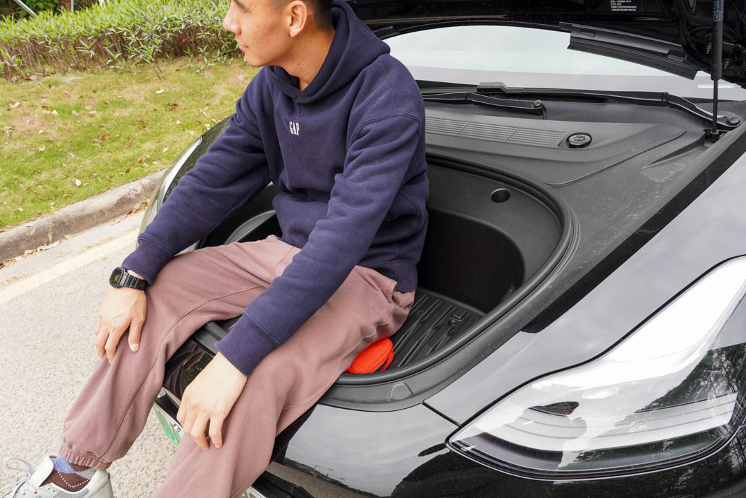 Model 3这车就像专门为前排乘客而设的,例如这个车头的行李厢,买菜啥的扔进去,不用走到车尾,方便!所以以后有人炫耀东西放在前备厢的话,其实可能他不是开保时捷等超跑,只是开Model 3而已。