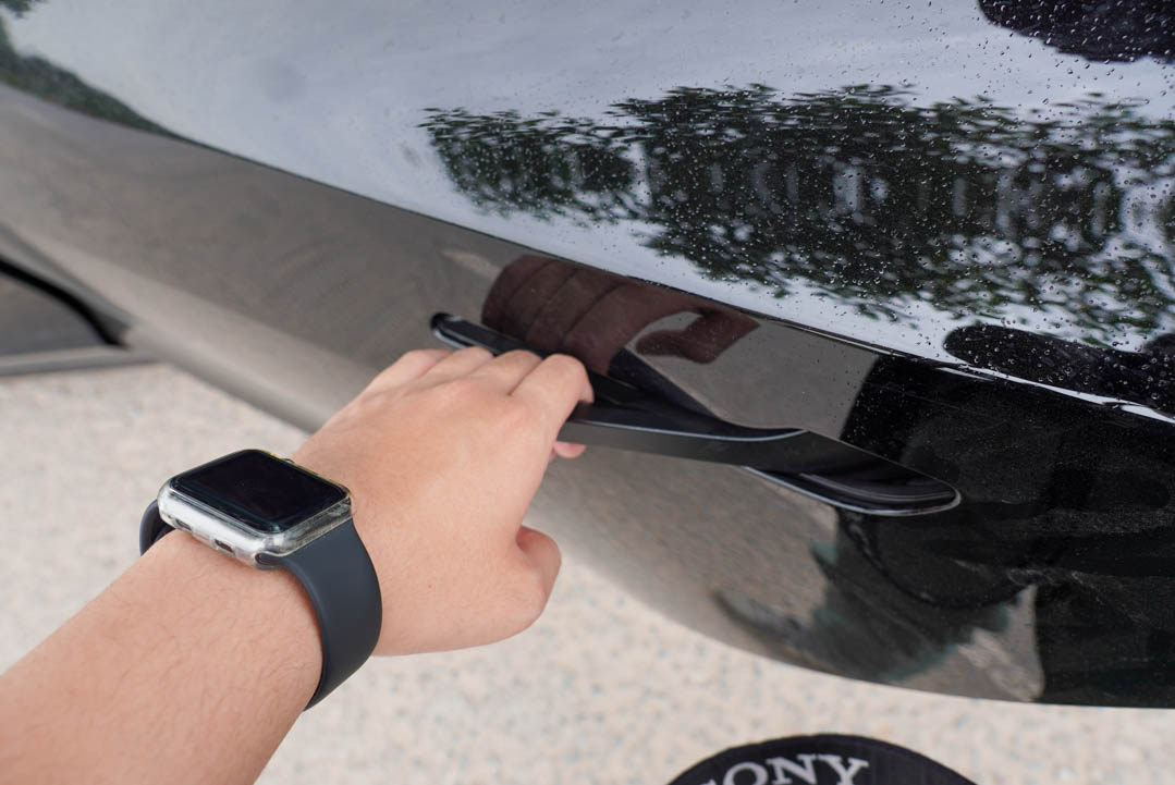 这个日常夹手的门把也是奇奇怪怪,假如你手上拿着一堆东西,想开个车门,一不小心反而背夹了,简直就是为了降低风阻而“反人类”的代表设计。