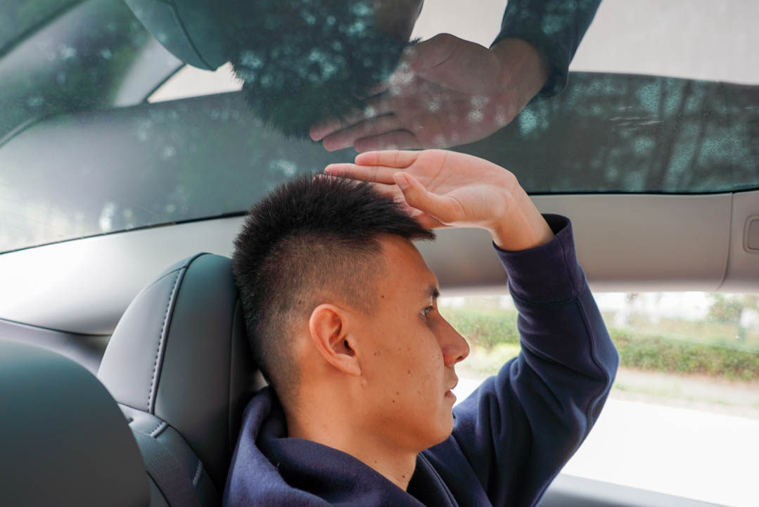 当然了,假如你身高180cm,落座特斯拉后排,甚至还能享受这块全景玻璃车顶的“免费头部桑拿”,当天的气温只有28°不到,但给人的感觉像是头顶装了“铁板烧”,长时间乘坐就两字——“烦躁”!