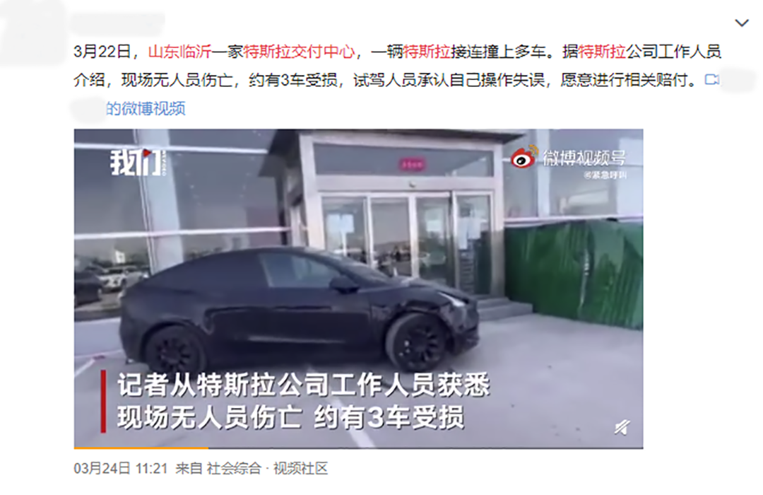 好比3月22日一名试驾员误踩Model 3油门连撞几台车,难得的是,当事人会承认是“自己失误”而诱发的意外。