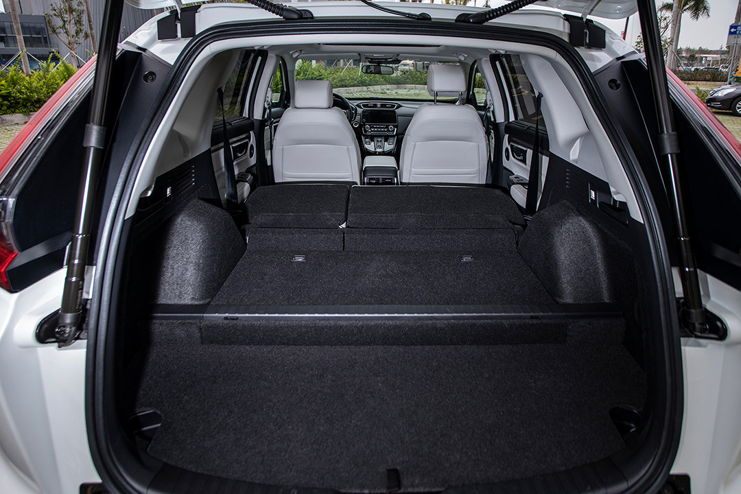 值得一提的是空间表现,除了没有备胎,你不会感觉到CR-V插电混动版车内有哪方面为电池布局做出了妥协,空间体验与燃油版一致,后排依旧可以折叠放倒,该有的置物空间一个不少。空间很本田。