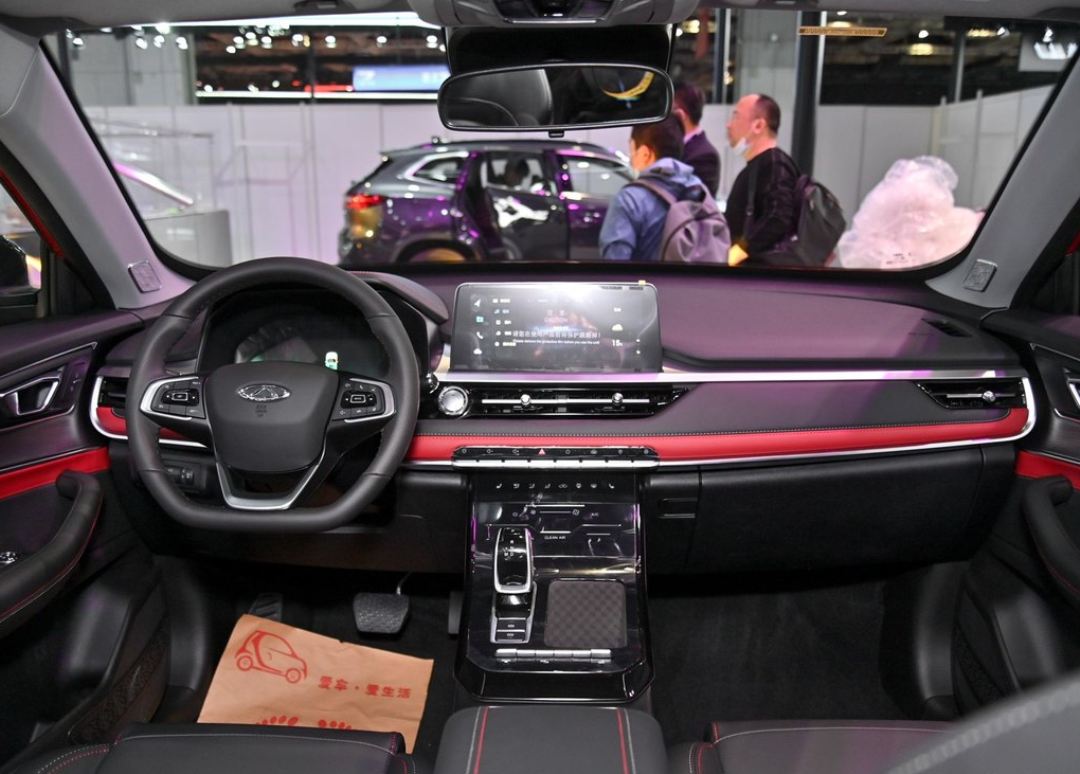 内饰方面,新车与神行版车型如出一辙,采用黑红的配色,看上去非常年轻时尚,颇具高级感;新车同样搭载了10.25英寸中控大屏和7英寸液晶仪表,下方配备了可触摸操作的空调操控面板和电子挡把,不得不说,自主品牌的车型在科技感上的拿捏还是非常到位的。