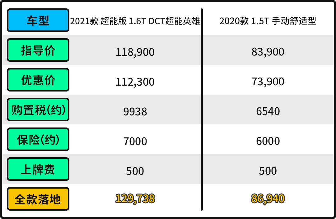 虽然超能版车型没有其它车型近1万的优惠,但根据官方公布的信息,交66定金即可享受6666元现金优惠,简单理解就是优惠6600元,已推荐的超能英雄版车型为例,优惠后裸车价为11.23万元,购置税9938,商业保险+交强险7000,上牌费500,全款落地13万左右。如果是贷款购车,以首付30%分期3年来算,首付金额为5.15万元,每月还款2347元,月薪5000元买车压力真不大。