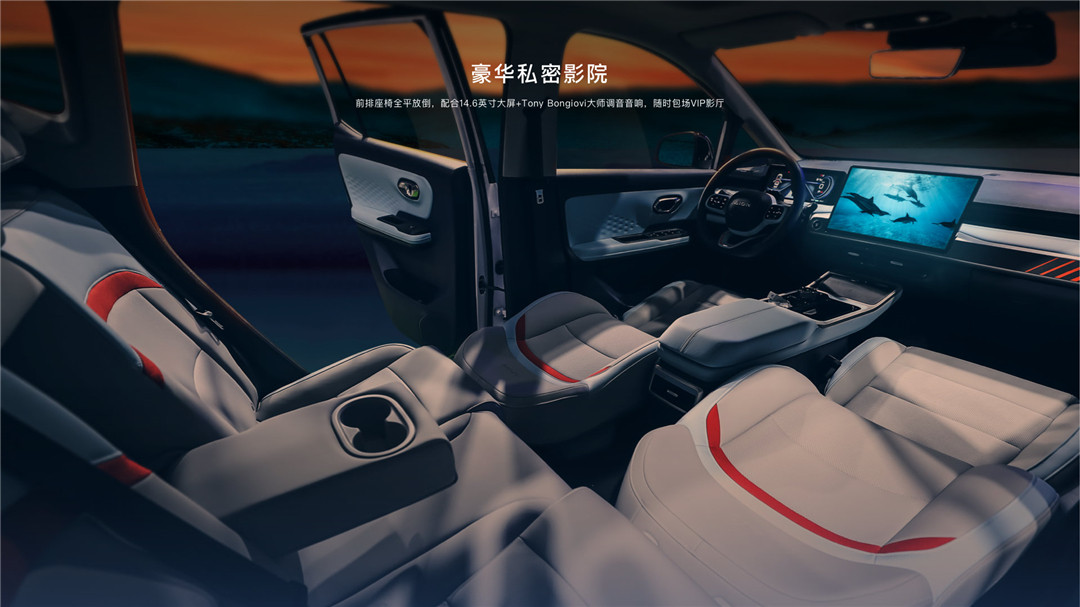除此之外,AION Y它的值得购买的点在于它的空间表现。如果说本田是空间魔术师,那么AION Y则是空间制造机。虽然,AION Y定位为紧凑型SUV,但它的空间一点都不紧凑,后排空间宽松到离谱,但这也仅仅是它的“前菜”,它最为硬核的地方就在于,把前排座椅放平之后,能够化身为一个私人影院,用户能够真正实现在车内平躺,这一点不得不佩服设计师的脑洞。