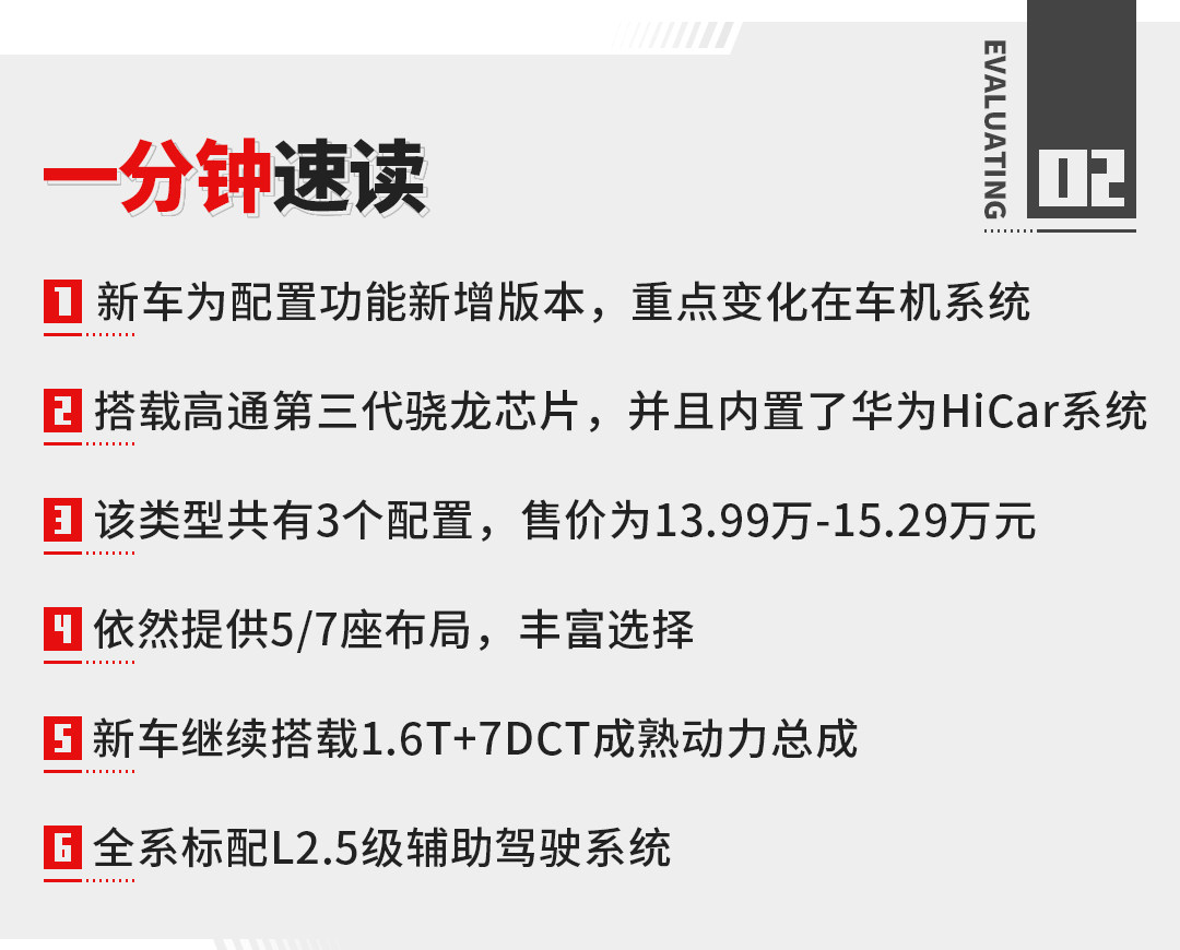 既然作为新增版本类型,新车在动力核心上依然维持现状。搭载1.6T+7DCT的成熟动力总成,最大功率145kW,峰值扭矩则为290N·m。这款动力总成在奇瑞集团车型已经是明星动力组合了,并且在前期已经推出了整车终身免费质保政策,可靠性可见一斑。