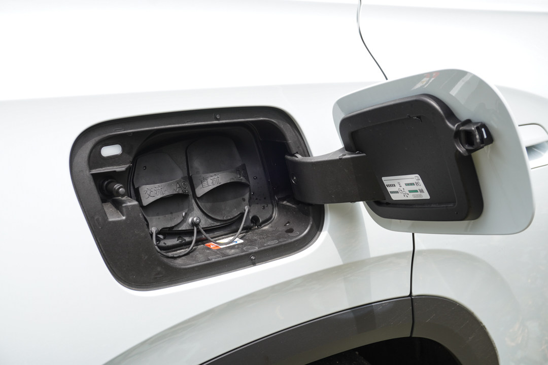充电接口位于车身的右后侧,配有交流电和直流电接口,以我们试驾的这款“极智长续航版”车型为例,其配备的是83.4kWh的电池,官方数据显示,快充状态下40分钟左右就能充到80%。