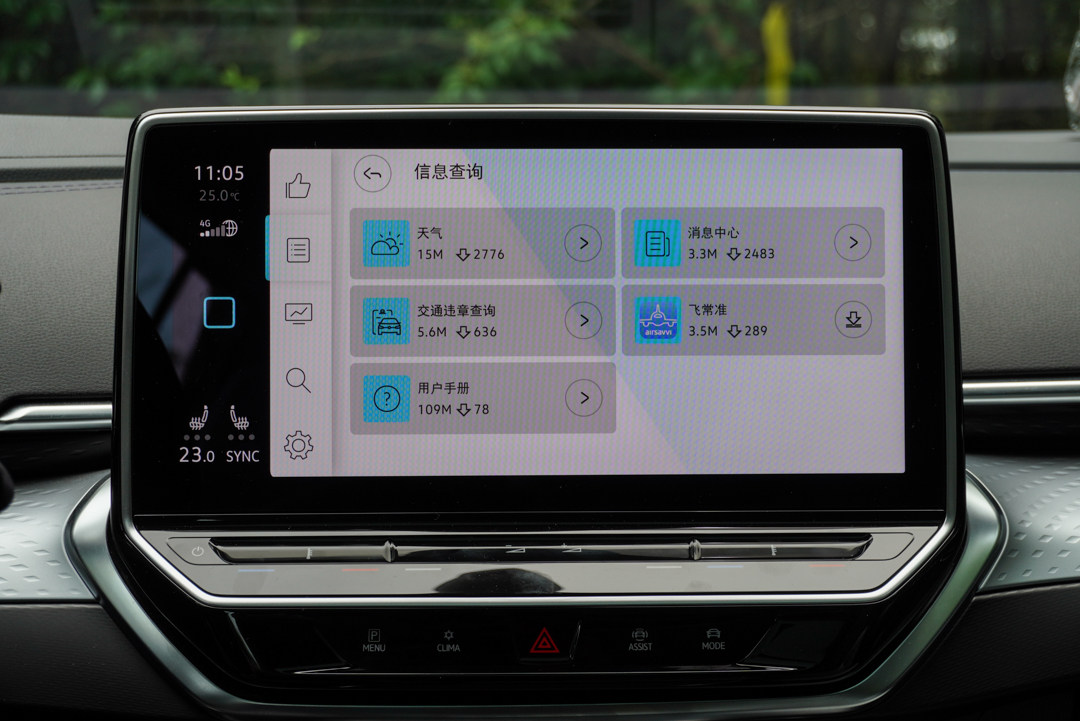 但对比大众的燃油车型,它的功能方面明显更丰富。除了常规的导航、多媒体、远程APP控制等在线功能之外,它还能通过在线商店下载应用扩展功能,体验跟目前的安卓手机颇为相似,但目前仍处于早期阶段,可下载的应用并不算多。
