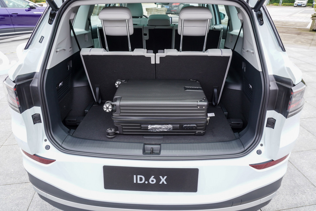 虽然不到4.9米车长配备了7座,但后备厢容积还是比较可观的。在常规状态下,能够横着放进20寸的登机箱,带有电动尾门功能的ID.6 X,相信满足日常的生活使用场景是足够了。假如你想获得更大的装载空间,还是得放倒第三排座椅靠背。