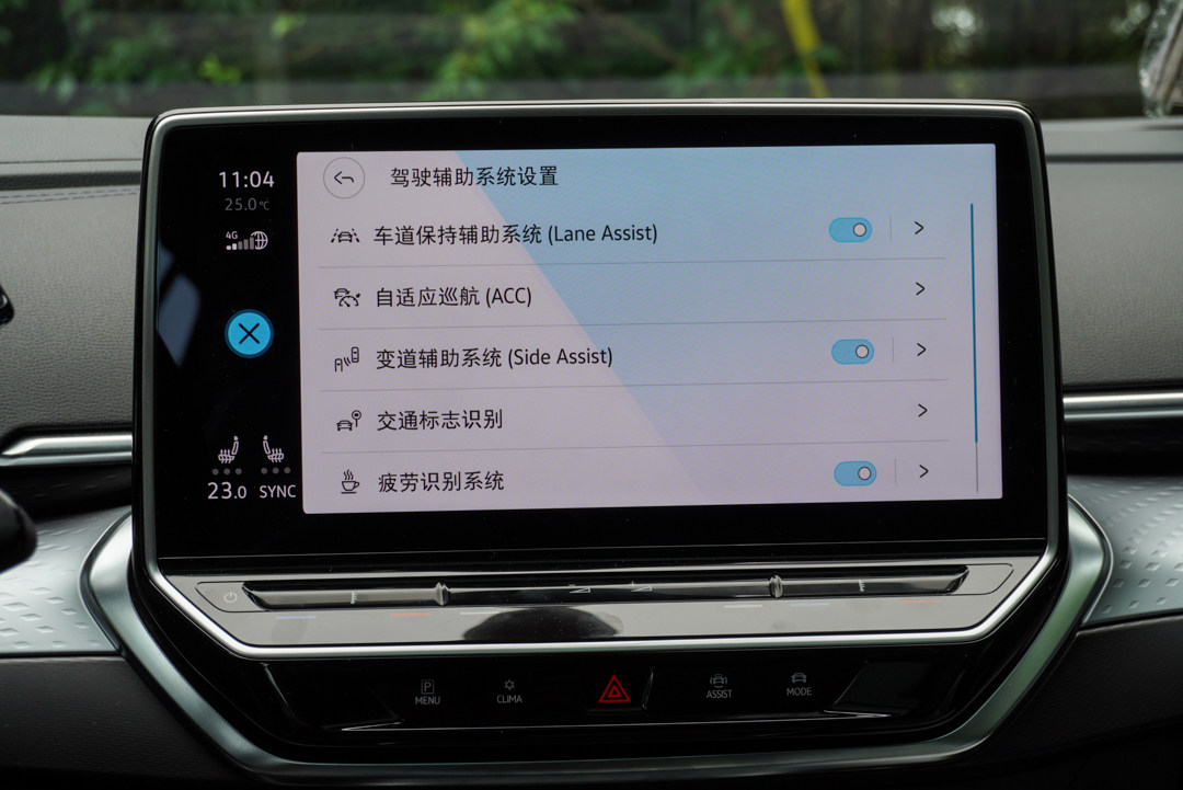 在自动驾驶辅助方面,ID.6 X还是展现出了它作为传统厂商产品的一面,与同级别越来越多车型支持领航驾驶不同,它只提供了L2级别的驾驶辅助,包括ACC自适应巡航、变道辅助、主动刹车、车道保持等功能。