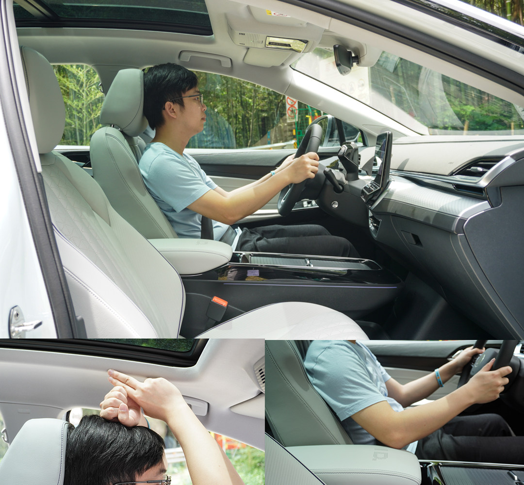 空间方面,身高175 cm的成年人落座驾驶位,并调节座椅至舒适状态,头部空间大约剩下一拳两指的余量,这在同级别中属于正常表现水平。