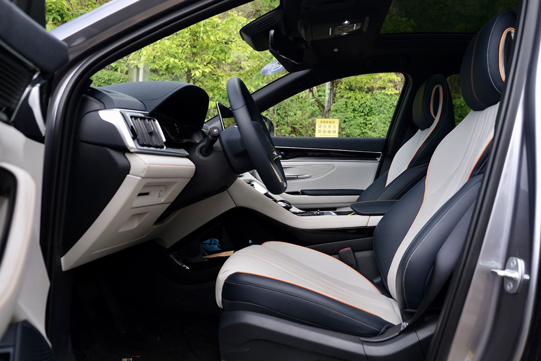 这套混动系统带有EV纯电模式、HEV串联模式、HEV并联模式以及发动机直驱模式。在日常行驶中,基本以电驱动为主,行驶非常平顺,没有传统AT、双离合变速箱带来的顿挫感,NVH表现喜人,也可以用一个词来形容——“高级”。