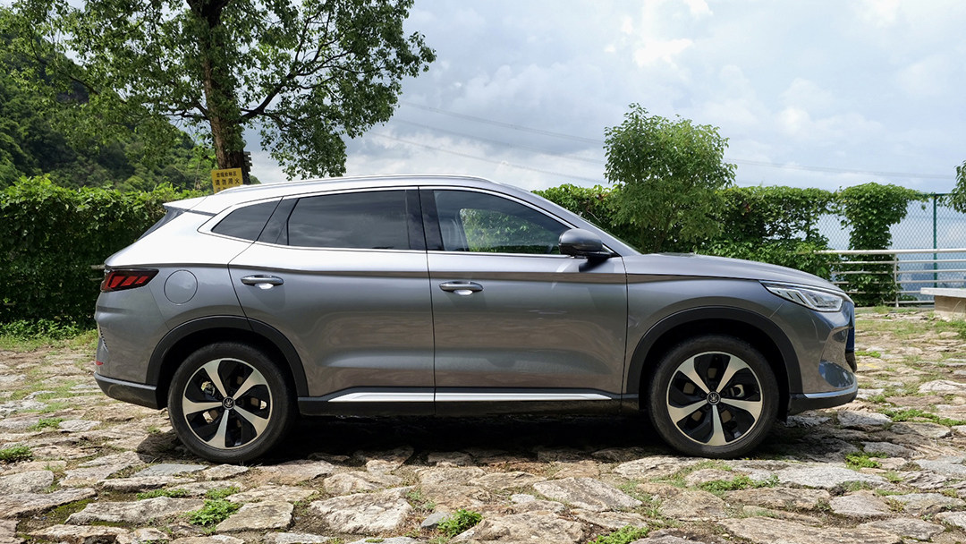 它的侧面则是带有双腰线,能够展示出车辆的力量感,从大灯延展到尾灯的近似高腰线,也是豪车常用的设计元素,显得车身更修长。另外的,这战斧式轮毂在这宋PLUS上也是相当般配,这种配合能力其实比增添细节难度更高。
