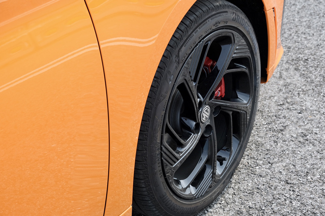 轮毂则是黑色旋风式设计,轮胎规格为225 45R18的普利司通泰然者T005,主打静音舒适。若能换上更注重抓地力的米其林PS4轮胎,相信能进一步发挥名爵6 PRO的实力。
