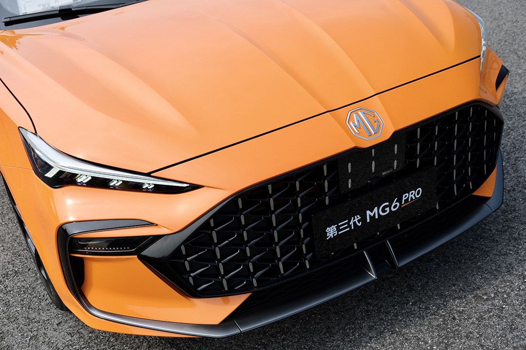 设计方面,进化到第三代车型的它可谓是“降维打击”,可比起同级对手要时尚不少。名爵6 PRO采用了全新前脸设计,俯冲的车头造型、竖向矩阵元素的大尺寸进气格栅、细长的LED日间行车灯以及分体式大灯设计,设计师将它整车姿态压低,这是如今大部分性能车/跑车的设计理念。