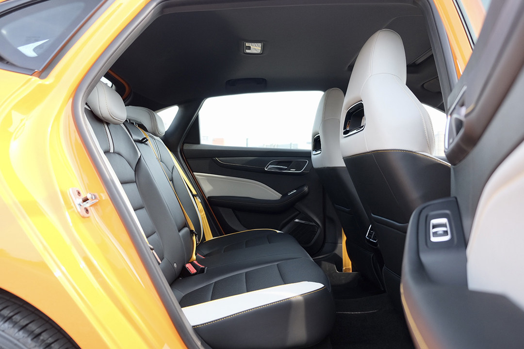 虽说新车尚未正式公布车身尺寸,但相信与现款相差不大,实测来看175cm体验者调整前排合适坐姿后,后排还有近两拳的腿部空间。而且得益于设计,溜背式车顶并没有侵占后排头部空间,保证了舒适性。