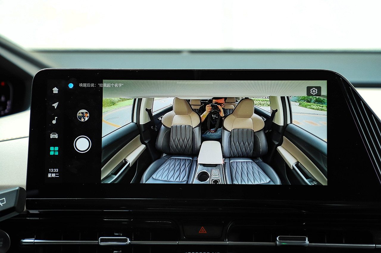 这套车机系统载入速度极快,是我体验过车型中的第一梯队,操作之后基本无需等待,体验非常好。而且它不不仅有全景影像,还配备了车内影像,跟朋友出去自驾游可以放心自拍,另外,大家从图中也可以感受到屏幕的画质,和影像的画面表现。
