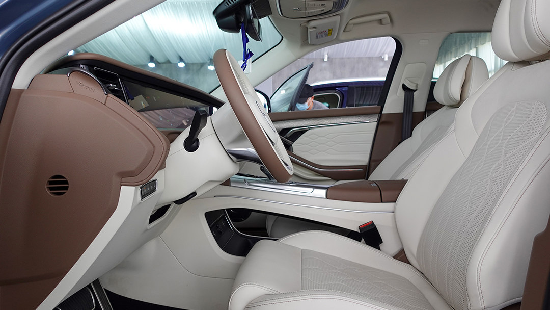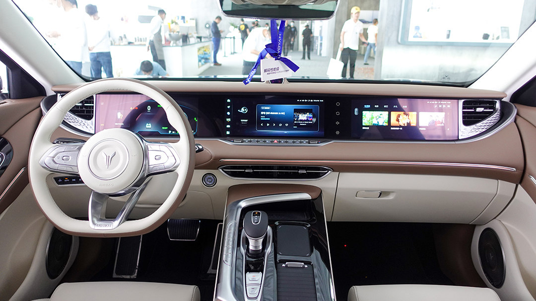 它的豪华也通过了配置体现,实拍车型配备了豪华品牌常用的丹拿10扬声器音响、前排座椅加热/通风/按摩、前排隔音玻璃、AR导航配置。另外比较创新的是,它采用了波音787舷窗相同技术的可变透光全景天幕,这可比起特斯拉那些不可调的好用多了,白天不热晚上亮堂。