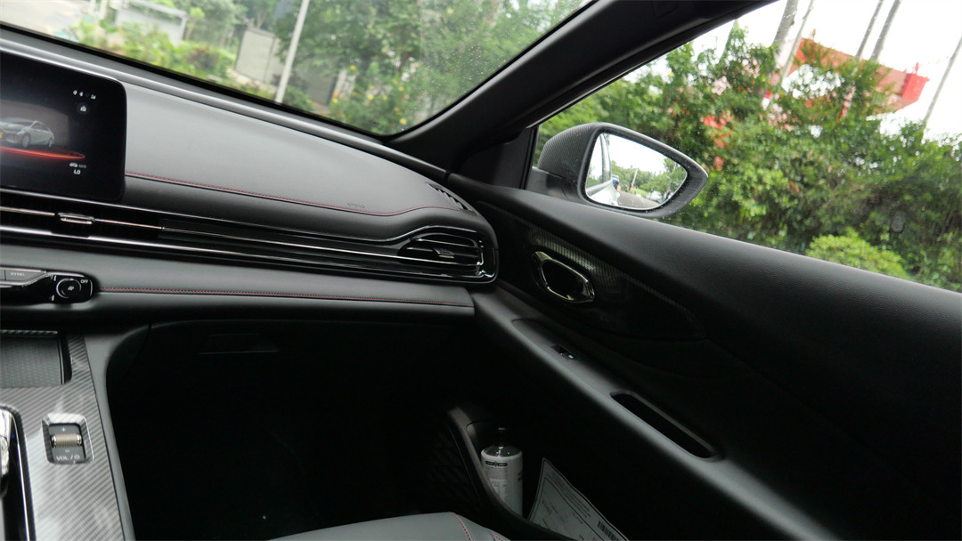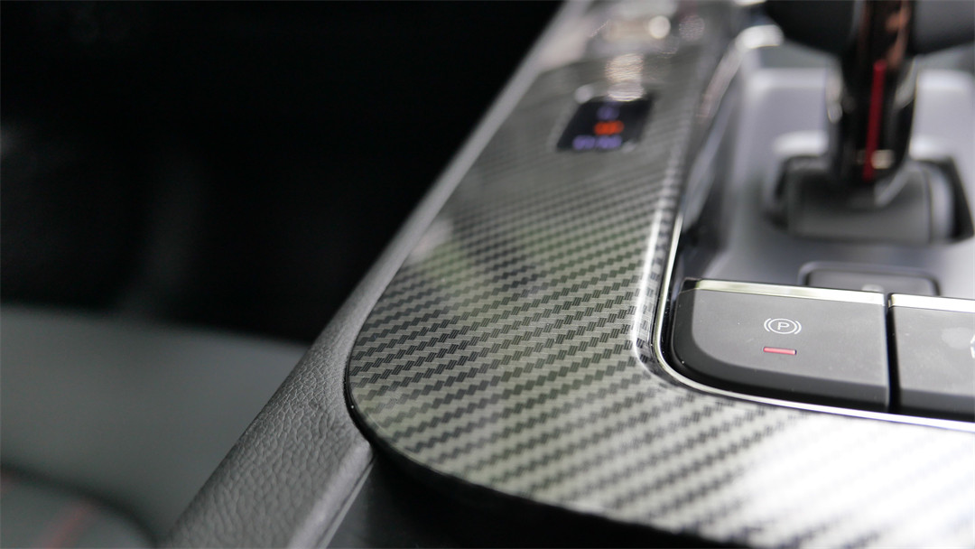细节之处还采用了碳纤维饰板点缀,虽然是假的,但起码能看出设计师为了营造运动氛围,在受限于成本的控制下,已经交出了令人较为满意的答卷。