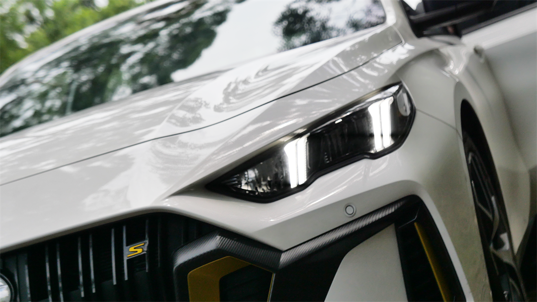因此,我们从它身上可以看到极其夸张的前脸设计、仿碳纤维饰板、凌厉的的腰线设计、溜背的造型、双边双出的排气布局、18英寸的大轮毂、黄色的卡钳罩[doge],一切设计元素都是往运动靠拢。
