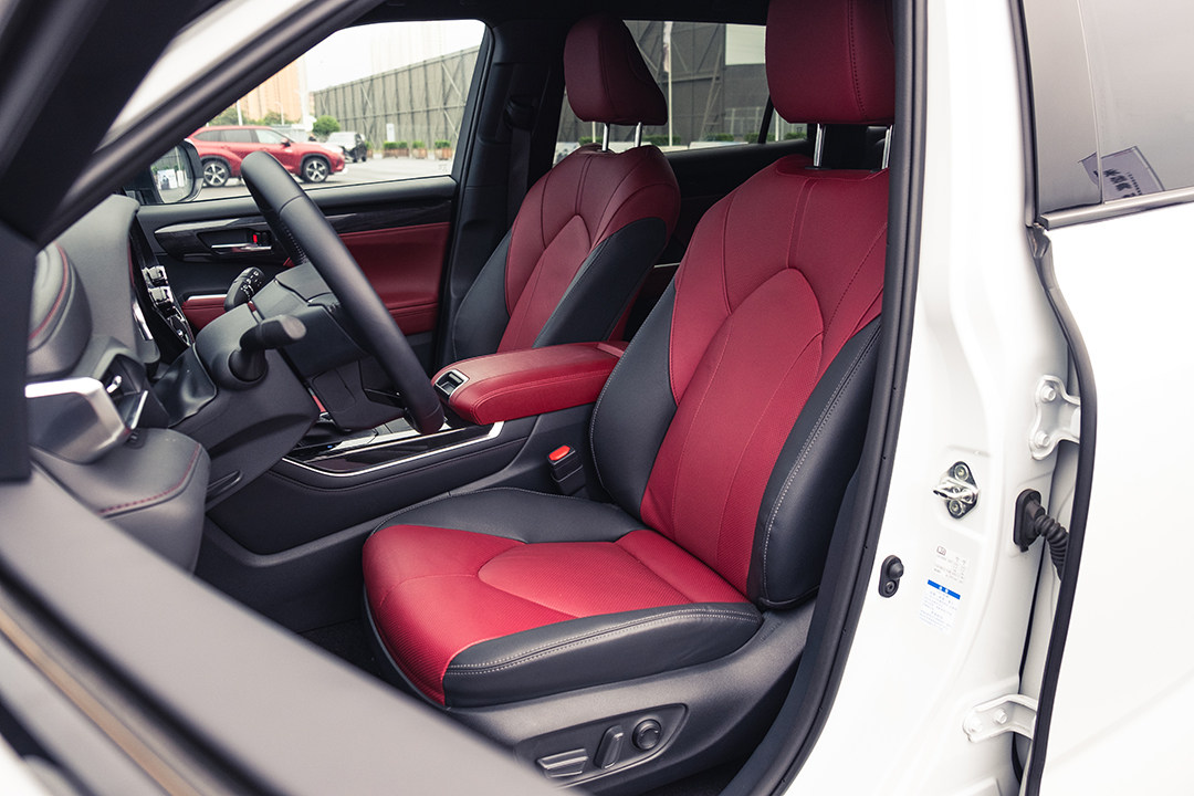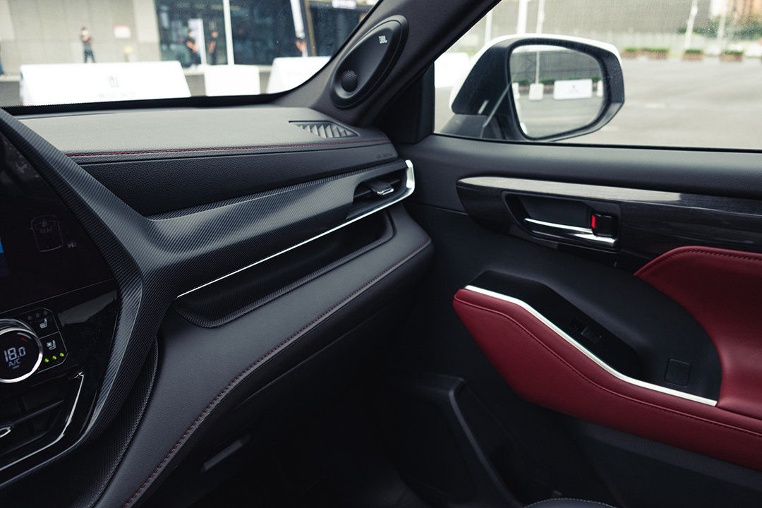 皇冠陆放的内饰造型设计与汉兰达基本一致,但红黑配色皮革以及碳纤纹路的饰板能带来更具冲击力的观感。