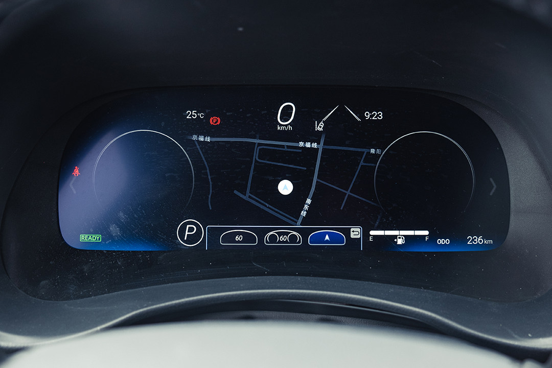 12.3英寸全液晶仪表盘共提供三种显示模式,此次试驾的顶配车型还配备了抬头显示系统。