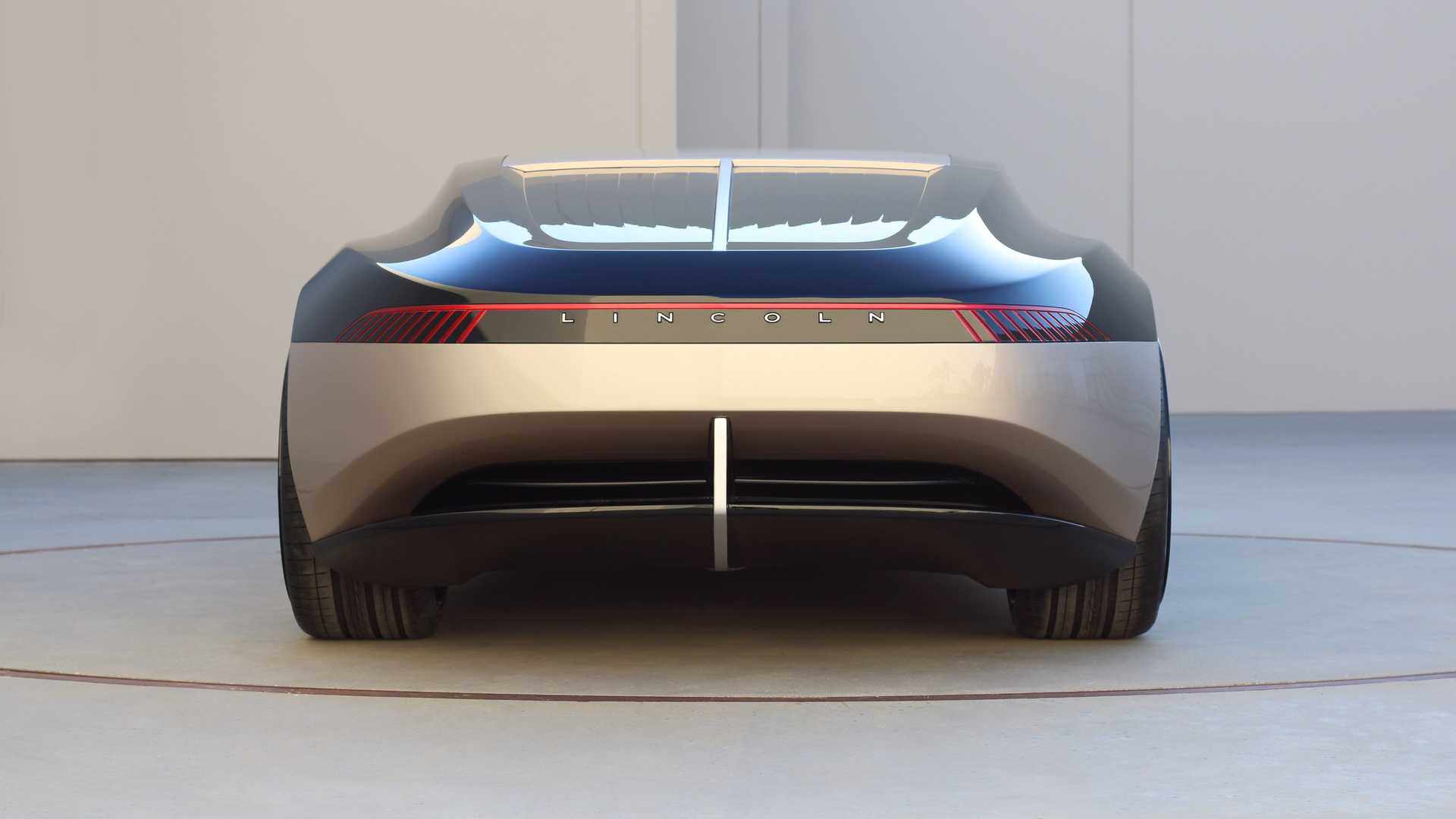 概念车的前脸采用了盾形的封闭式进气格栅,中间配备了大尺寸的林肯汽车LOGO,两侧是狭长犀利的大灯组,大灯组旁边应该是导风槽设计,能够进一步减少车头的空气阻力。