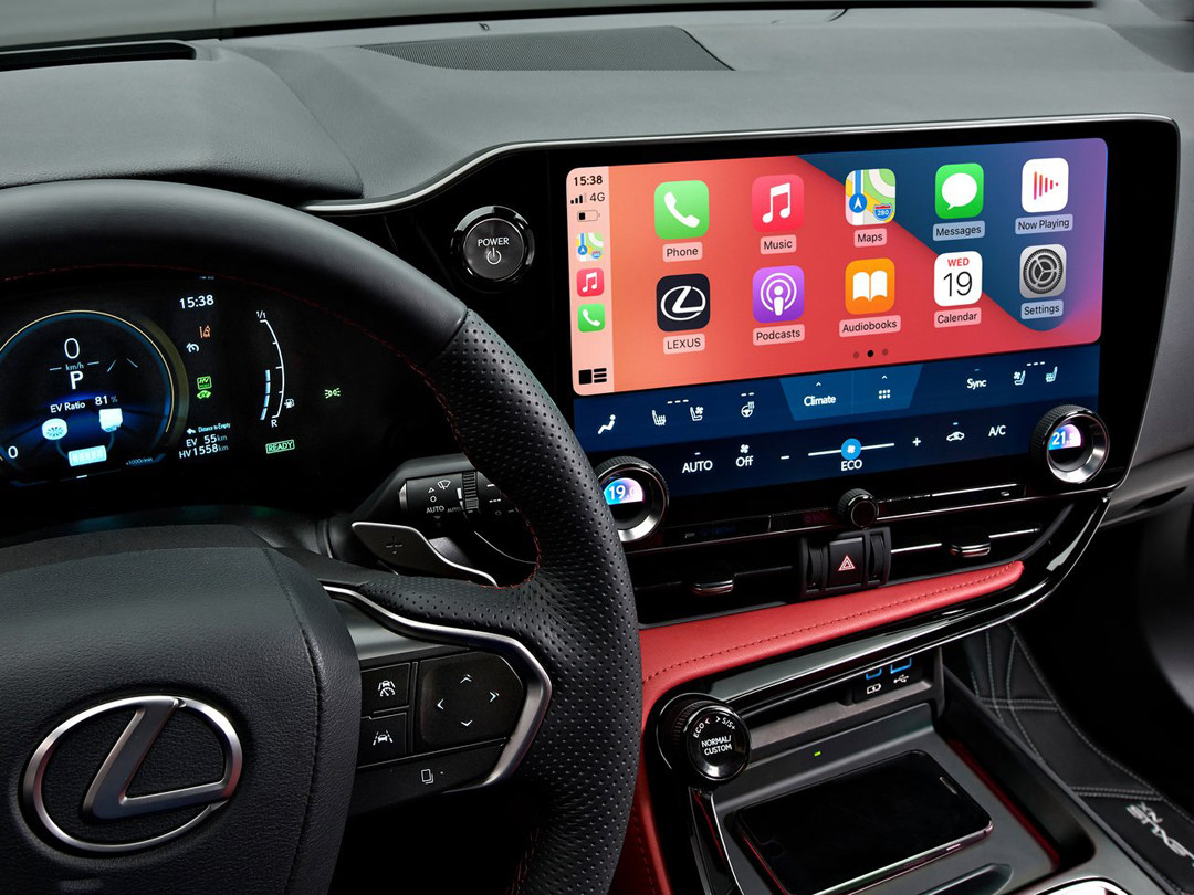 中央显示屏是提升最明显的地方,现款车型除了顶配车型使用10.3英寸屏幕以外,其余配置均使用8英寸的中央显示屏。新款车型上,全系标配9.8英寸,并且高配车型将升级至14英寸,同时屏幕会更靠近驾驶员,使用起来更顺手。此外,新款NX还取消了老款车型位于挡把附近的触控区域,转而使用全触屏交互,这是全新NX在车机系统上的一大进步。