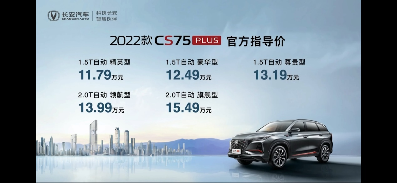 2022款CS75PLUS在延续现款优势的基础上,多方面带来了16项功能升级,为消费者提供了更全面、更贴心的驾驶体验。2022款CS75PLUS的起步价相比与老款10.69万仅增加了1.1万元。