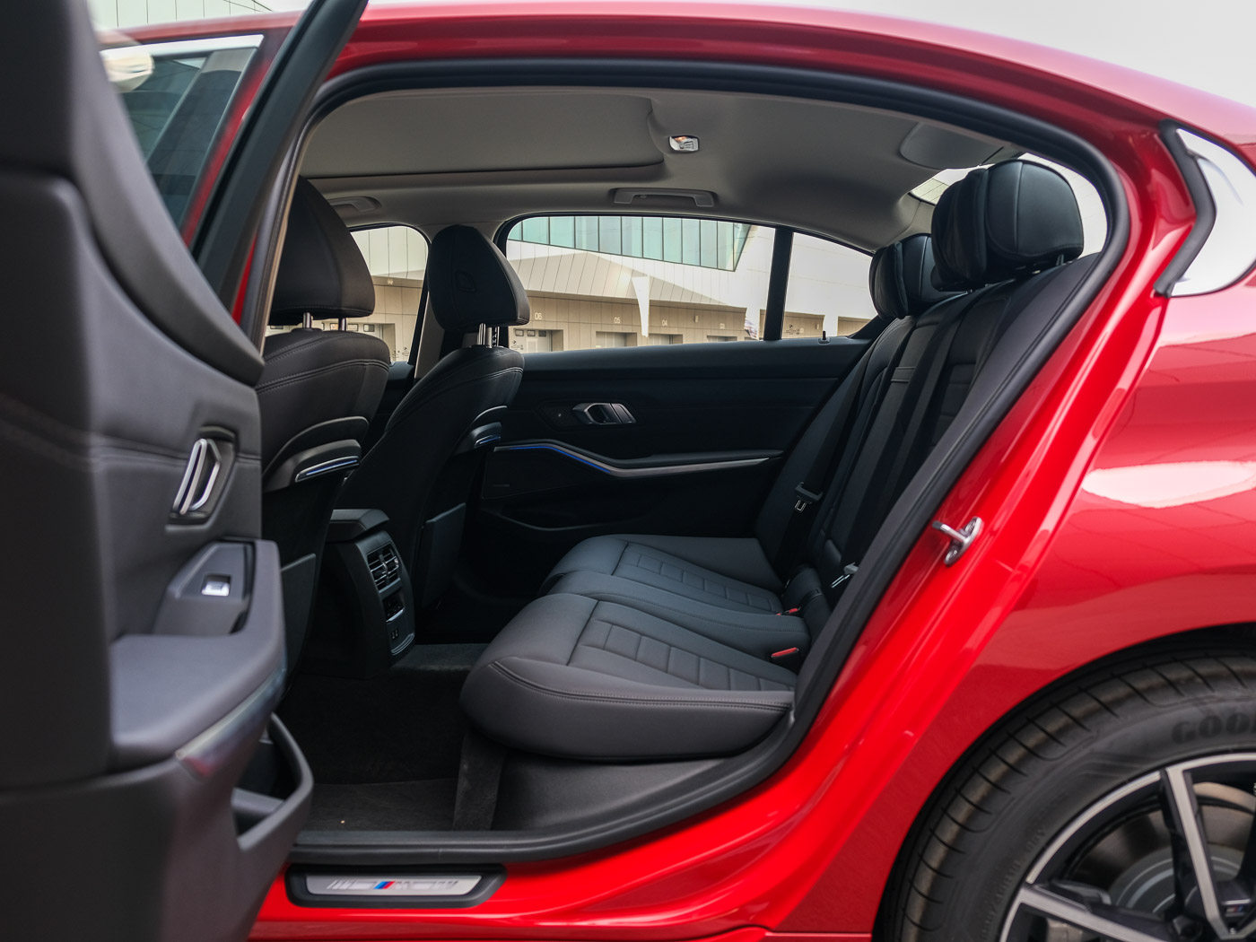 单从轴距来看,宝马3系比全新奔驰C级长了7mm,但别小看这7mm,在后排实际乘坐体验感上,3系的纵向空间表现还是要稍微宽敞一些的,并且较长的坐垫的尺寸也对大腿带来了不错的承托性。而在全新奔驰C级上,后排纵向空间的确是略逊色,不过好再座椅的填充物更柔软,在舒适性方面挽回了一点分数。