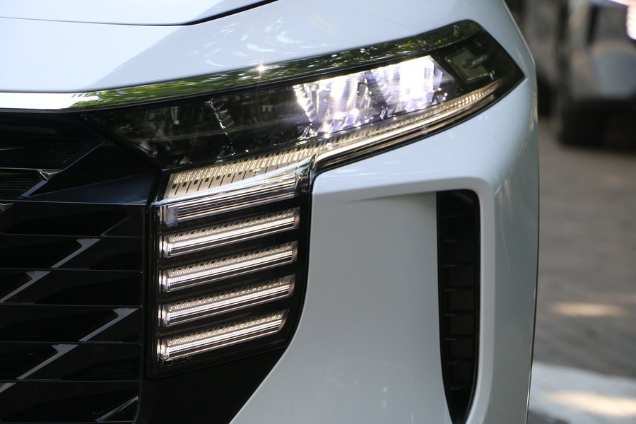 而LED日间行车灯也为多维晶体结构,并以四横条状排列,辨识度极高,要知道上至BBA等豪华车型的日间行车大部分都以条或点状集聚在灯组里面,很少会有如此大面积布局。