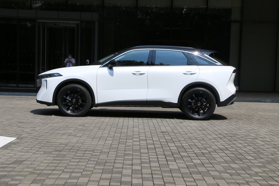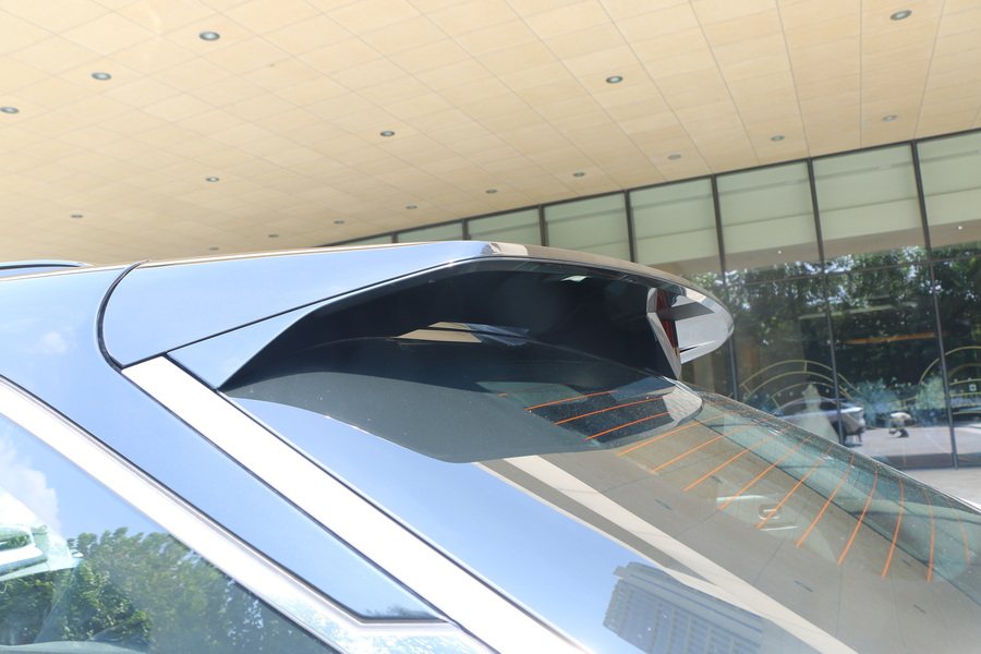 此外,还应用上迎合当下主流审美的黑白撞色搭配设计,搭配上灵感来自飞机涡轮的19寸超大轮毂以及如同箭末羽毛、符合空气动力学的削切式尾翼,呈现出立体灵动感之余,也进一步提升整车运动感。