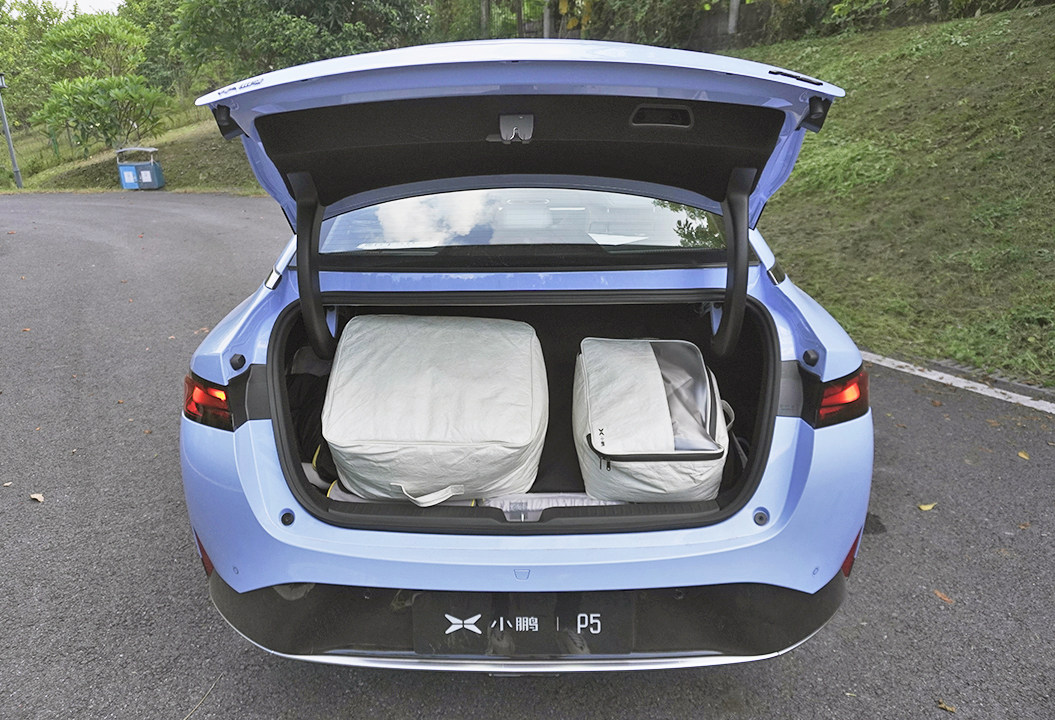 450L的后备箱容积不算大,再加上溜背造型对开口大小也有影响,只能说这个容积马马虎虎,日常无法装载更多的东西,如果用户有兴趣选购了一套官方的充气床垫、遮阳板、投影仪等设备,在全部收纳进后备箱时基本没剩多少空间可利用,所以开着P5去露营这种做法不会是常态,偶尔的放松倒是问题不大。